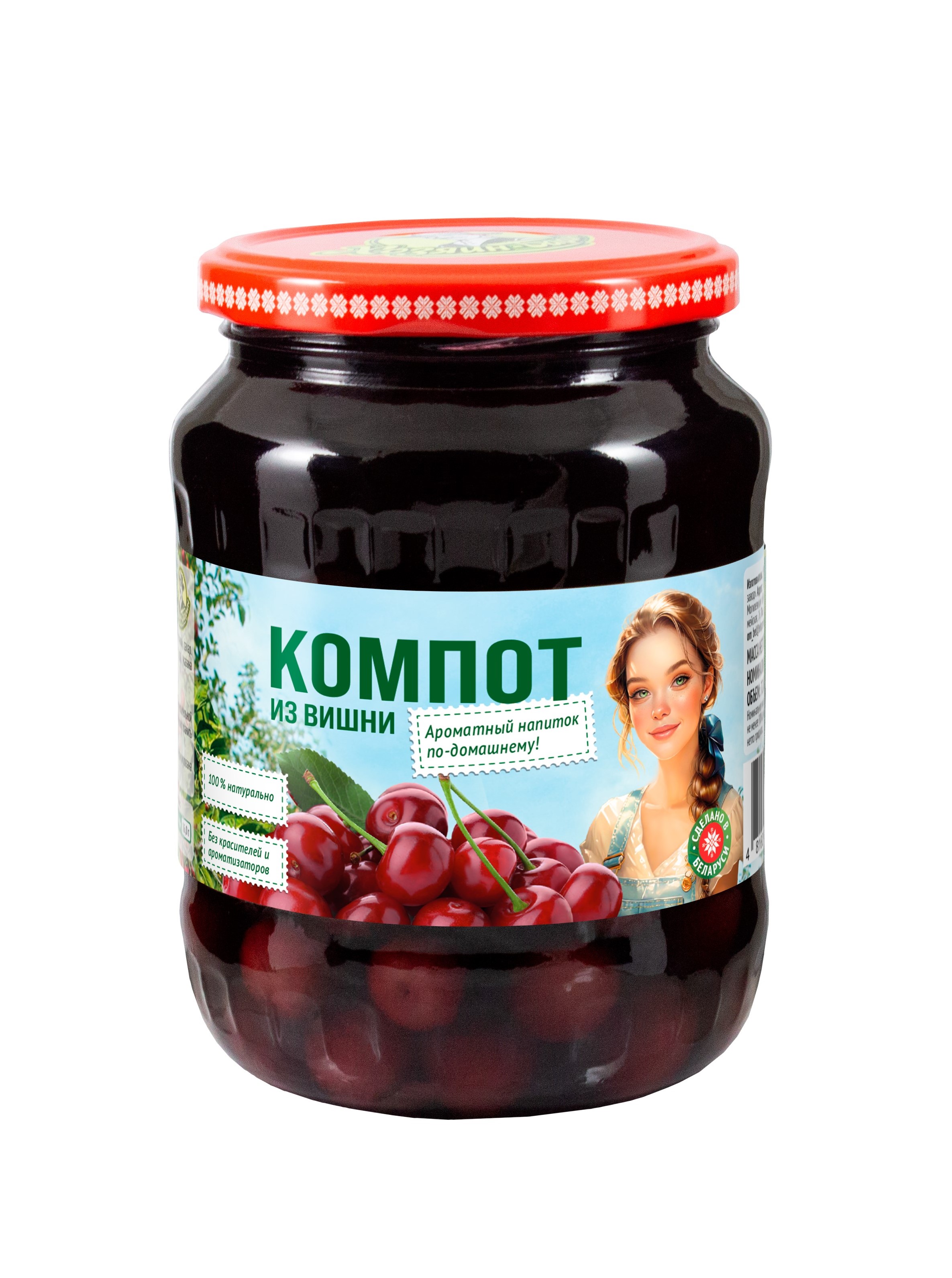 СОСТАВ: вода питьевая, вишня свежая с косточкой, сахар.ПИЩЕВАЯ ЦЕННОСТЬ 100 г продукта: углеводы - 16,0 г. ЭНЕРГЕТИЧЕСКАЯ ЦЕННОСТЬ: 65 ккал /270 кДж